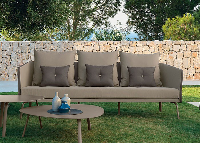Canapé conçu pour un usage extérieurRésistant aux températures extrêmes, UV et intempériesStructure en aluminiumCoussins d'assise, 3 coussins de dossier et 3 coussins décoratifs inclus - Déhoussables, faciles d'entretien, résistants aux intempéries, mousse Quick DryDimensions : L228cm x larg 78cm x H70cm (hauteur d’assise h35cm) – Poids 29kg2 associations de coloris :- structure blanc et taupe/coussin d'assise blanc/coussins de dossier blanc et coussins décoratifs taupe- structure taupe et mokka/coussin d'assise taupe/coussins de dossier taupe et coussins décoratifs mokkaHousse de protection vendue séparément