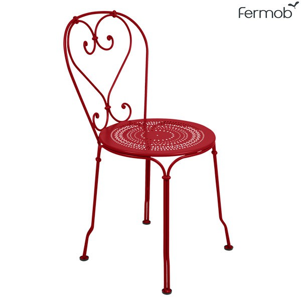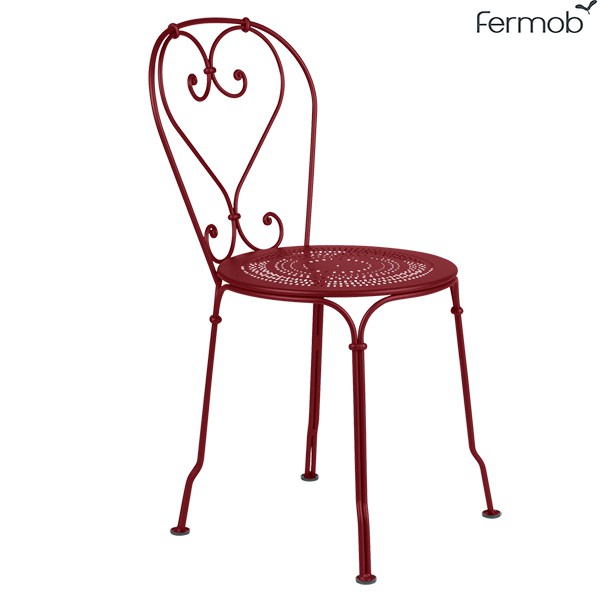 La Chaise 1900 de chez Fermob reprend la chaise classique au charme à la française. La Chaise 1900 nous fait voyager à l'époque traditionnelle, des jardins romantiques, des guingettes et des squares fleuris... Avec ses belles volutes forgées main et son assise en tôle acier perforée, la Chaise 1900 diffuse un style rétro modernisé. Cette chaise incontournable a été redessinée il y a plusieurs années afin de la rendre plus ergonomique et pratique grâce à son empilabilité.