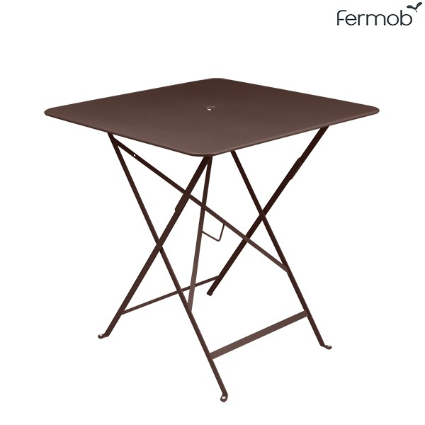 Table de repas carrée conçue pour un usage extérieurStructure acier - Plateau tôle acier - Peinture poudre anti-UV Traitement haute protection pour usage extérieurTraverses monobloc - Patins de protection monobloc pour meilleure tenue et une pose facilitéTrou pour parasol Ø 41mm - Table pliante - Adaptée pour usage professionnel - Table 3 à 4 places Dimensions: L71cm x larg 71cm x H74cm - Hauteur sous plateau 72,5cm - Poids: 10KGColoris: blanc coton, muscade, rouille, ocre rouge, piment, coquelicot, tilleul, vert opaline, miel, capucine, rose praline, cactus, romarin, cèdre, réglisse, gris métal, bleu lagune, gris orage, carbone, bleu acapulco, bleu abysse, gris argile, citron givré, menthe glacialeLa Table Bistro 71 x 71cm de chez Fermob est une table de repas déco très pratique. Cette table pliante est idéale pour aménager un coin repas en extérieur, même dans un espace assez restreint. Elle se plie pour faciliter son rangement une fois qu'elle ne sert plus. Réalisée en acier recouvert de peinture poudre anti-UV, elle s'installe en extérieur sans aucun soucis. Déclinée en plusieurs coloris très tendances, elle s'adapte à tous les styles et tous les goûts.
