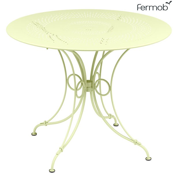 Table de repas conçue pour un usage etxérieurStructure en fil d'acier avec peinture poudre anti-UV - Volutes et bagues forgées mainAssise en tôle d'acier perforéeTable 4 à 5 places - A monter Dimensions: Ø96cm x H71cm - trou pour parasol au centre de la table Ø39mm - Poids: 15KGColoris disponibles: blanc coton, muscade, rouille, ocre rouge, piment, coquelicot, tilleul, vert opaline, miel, capucine, coquelicot, cactus, romarin, cèdre, gris métal, bleu lagune, gris orage, carbone, bleu acapulco, réglisse, gris argile, citron givré, menthe glacialeLa Table de Repas 1900 Ø96cm de chez Fermob est une table de repas au style romantique modernisé. Avec sa structure en fil d'acier, ses volutes et bagues forgées mains et son plateau en tôle d'acier perforée, la table de repas 1900 évoque le charme à l'ancienne. Son métal est recouvert de peinture poudre anti-UV et traité pour une haute protection en extérieur. Cette table de repas convient aussi bien à un usage privé que professionnel. Avec son diamètre de 96cm, elle accueille 4 à 5 personnes à prendre place autour d'elle pour boire un café, une boisson fraîche ou grignotter en plein air. La Table de Repas 1900 est équipée d'un trou pour parasol au centre de son plateau. Elle est disponible dans la large palette de couleurs Fermob, aussi bien vives que sobres, afin de s'adapter à tous les styles d'extérieur.